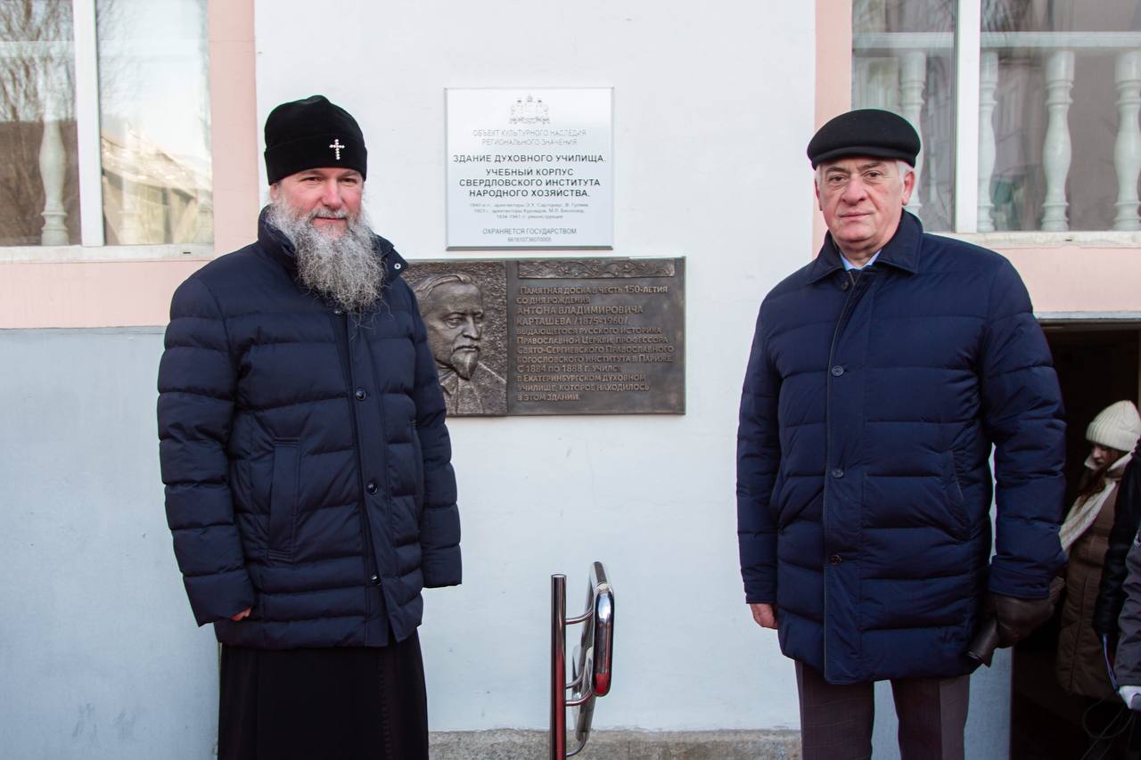 Табличку на здании УрГЭУ открыли в начале февраля 2026 года в присутствии ректора вуза Якова Силина и митрополита Екатеринбургского Верхотурского Евгения.